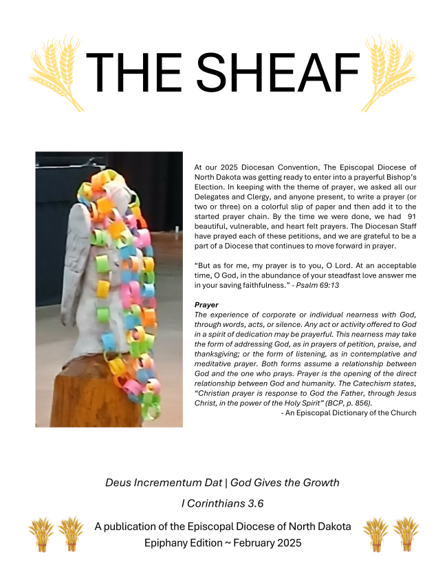 The Sheaf is a publication of the Episcopal Diocese of North Dakota, for sharing news and events throughout our community.